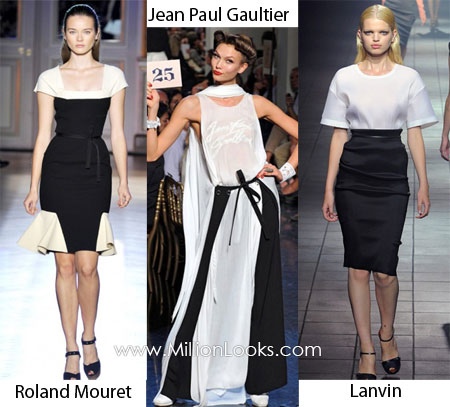 While black and white tones are the most traditional combination of colors for formal clothing, which isn’t normally very original in design, in the new season everything is going to be different. Black-and-white pieces on the runway were playful, stylish and chic. Girls paraded in feminine cocktail dresses, translucent gowns, leather suits teamed with sexy blouses, etc.