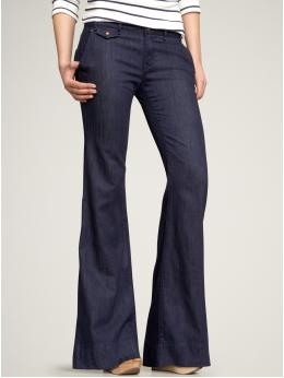 I’m just wondering, is the skinny jean passe? Can we all stop walking around like ice cream cones (wide middles that come to a point at the ankles) now and get back to a more figure flattering jean trend? I certainly hope so. Gap thinks so too. They have a lovely new line of high-waisted indigo flares that are bound to make you look like a tall drink of water. Much better than a tubby ice cream cone!