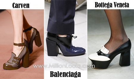 Chunky heels were spotted at Chanel, Bottega Veneta, Balenciaga’s, and other shows. Heavy shoes also feature high platforms and multiple straps.