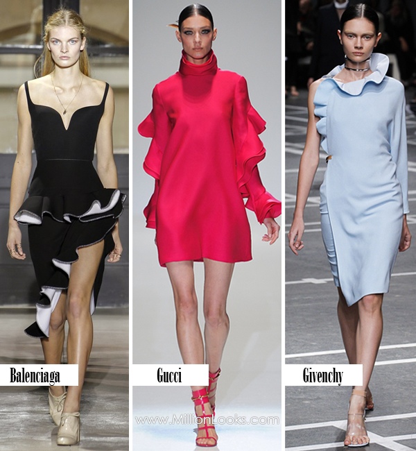 Ruffles were another reccuring trend on the runways. Balenciaga and Givenchy went for assymetrical ruffles that decorated the dresses while Gucci showed ruffles teamed with streamline silhouettes which made a nice contrast in shapes.