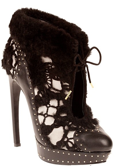 Materials that prevail in Fall/ Winter 2011/ 2012 shoe collections include: ordinary leather, patent and reptile skins, suede and satin. There is also a lot lace and occasional fur this season.