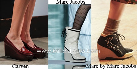Shoe Trend for Fall/ Winter 2011/ 2012 #5: Platforms and wedges. Wedge trend has transferred to Fall/ Winter 2011/ 2012 from the previous season. But if in Spring/ Summer 2011 we have seen colorful and unusual platforms for Fall/ Winter 2011/ 2012 designs are more modest and elegant.
