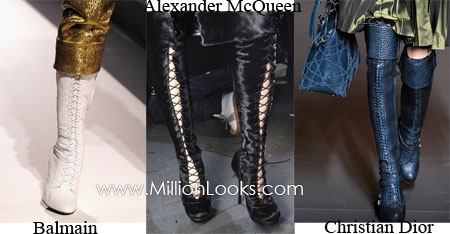 Shoe Trend for Fall/ Winter 2011/ 2012 #6: Lacing. As well as the wedge trend, lacing has been brought by designers from Spring/ Summer 2011 fashion season. And we also see the transformation of the style. Lacing, which used to be rather delicate and feminine in Spring, has become sexier and more aggressive in Fall and Winter. See Alexander McQueen, Marc Jacobs, Rag & Bone for lacing.