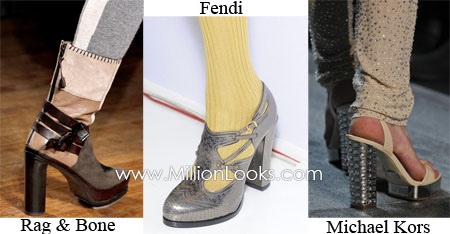 Shoe Trend for Fall/ Winter 2011/ 2012 #8: Chunky heel. It is quite reasonable that chunky heels appear during colder seasons as they provide comfort and confidence we all need at this time. In Fall/ Winter 2011/ 2012 collections there are plenty of shoes with chunky heels. Styles of these shoes are very different, from classy pumps to rocker boots.