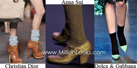 Shoe Trend for Fall/ Winter 2011/ 2012 #10: Socks in shoes. Few women really like wearing socks in their shoes but after Rihanna appeared in public sporting pumps with a pair of socks millions of her fans started copying her. If socks in shoes seem too much for you try warm tights instead. At least you will look more elegant.