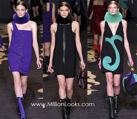 For colder seasons designers normally prefer using neutral or reserved colors like black, brown, navy, cream, dark violet, etc. However, Fall/ Winter 2011/ 2012 collections abound in brighter hues like crimson, neon orange, purple, sky blue and others. Besides, these eye-popping tones can come in daring combinations. See Haider Ackermann, Alberta Ferretti, Victoria Beckham, Tommy Hilfiger, Burberry Prorsum, and other designers and brands for inspiration.