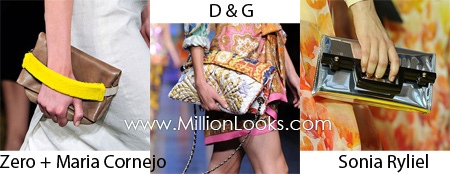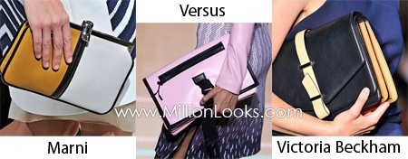 Bag Trend #1: Large clutches. While clutches are usually small and fancy those designers offer us to carry during Spring/ Summer 2012 are large enough to hold all necessary stuff a woman needs daily. Such clutches come both in neutral colors to be good for office wear and in brighter hues for less formal outfits.